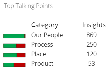 You can see the topics your customers feel most strongly about using the Top talking points gadget. It shows the total number of positive and negative customer responses in each category.