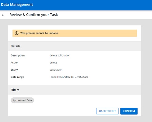 Data management users with access to the delete feature are able to select existing field attributes in the project as an attribute to be filtered to enable isolation for deletion specific solicitation record.