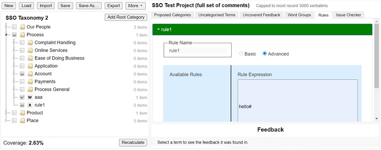 2.99.0 - Improved visibility of feedback coverage when clicking rule on taxonomy tree and rule tab.