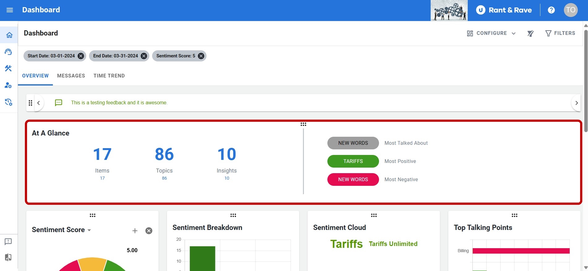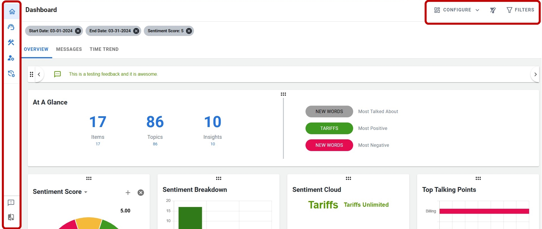 The message ticker remains at the top of your overview tab. However, the overview tab is now nested below and to the right of components from the dashboard menu in the current dashboard.