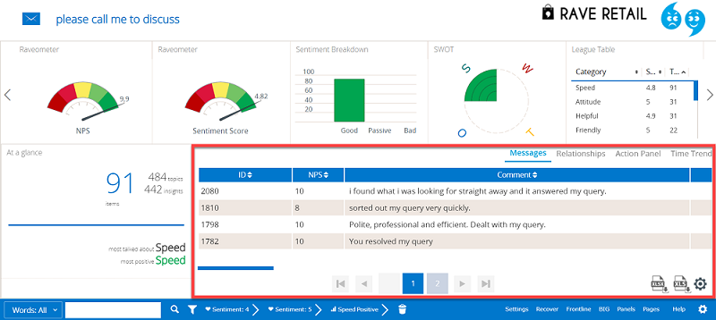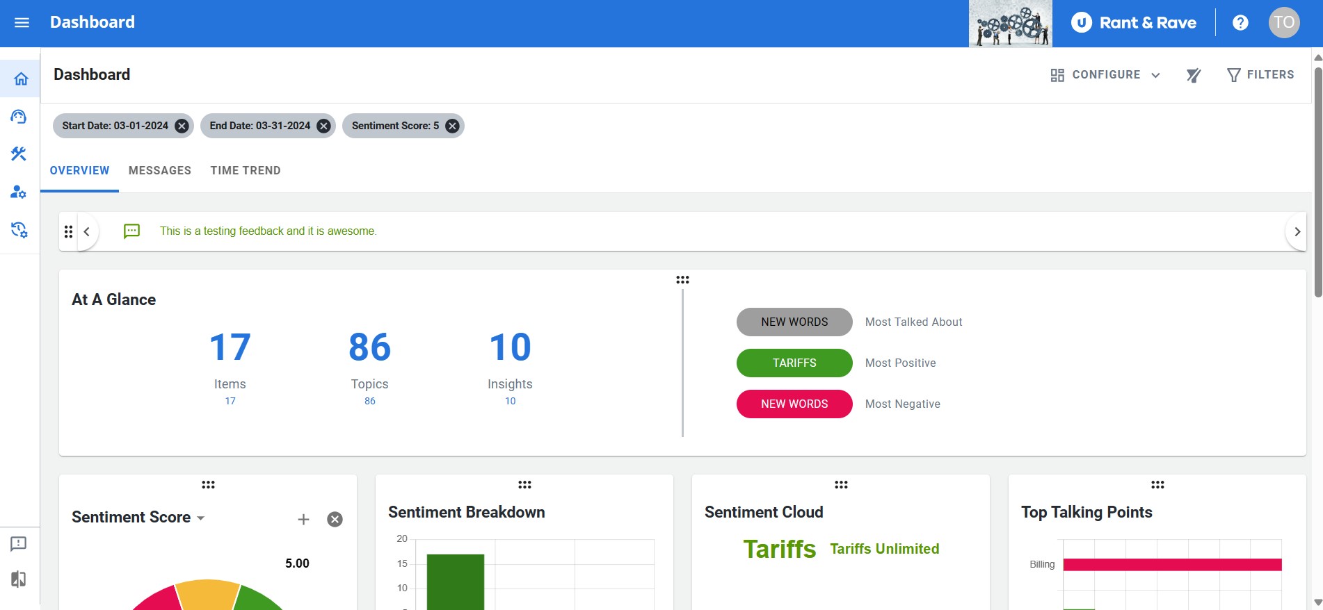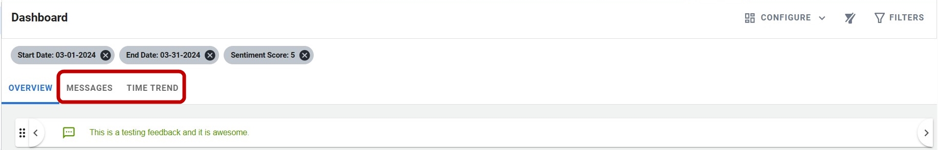 Note: At launch, only the messages tab is available. Functionality for the time trend tab is to be added in subsequent updates.
