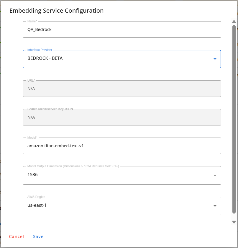 We have introduced support for Amazon Bedrock for embedding services for neural and hybrid searches. Administrators can now select Amazon Bedrock as the embedding engine directly within the Solr Configuration section of the Administrator Console. When enabled, the system generates vector embeddings using the Amazon Bedrock model.