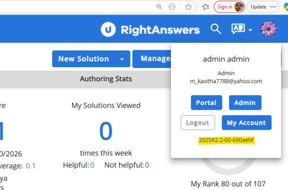 This enhancement allows you to quickly and easily confirm the current version of your RightAnswers platform at any time. It improves transparency and makes it simpler to confirm version details when troubleshooting, reporting issues, or contacting support.