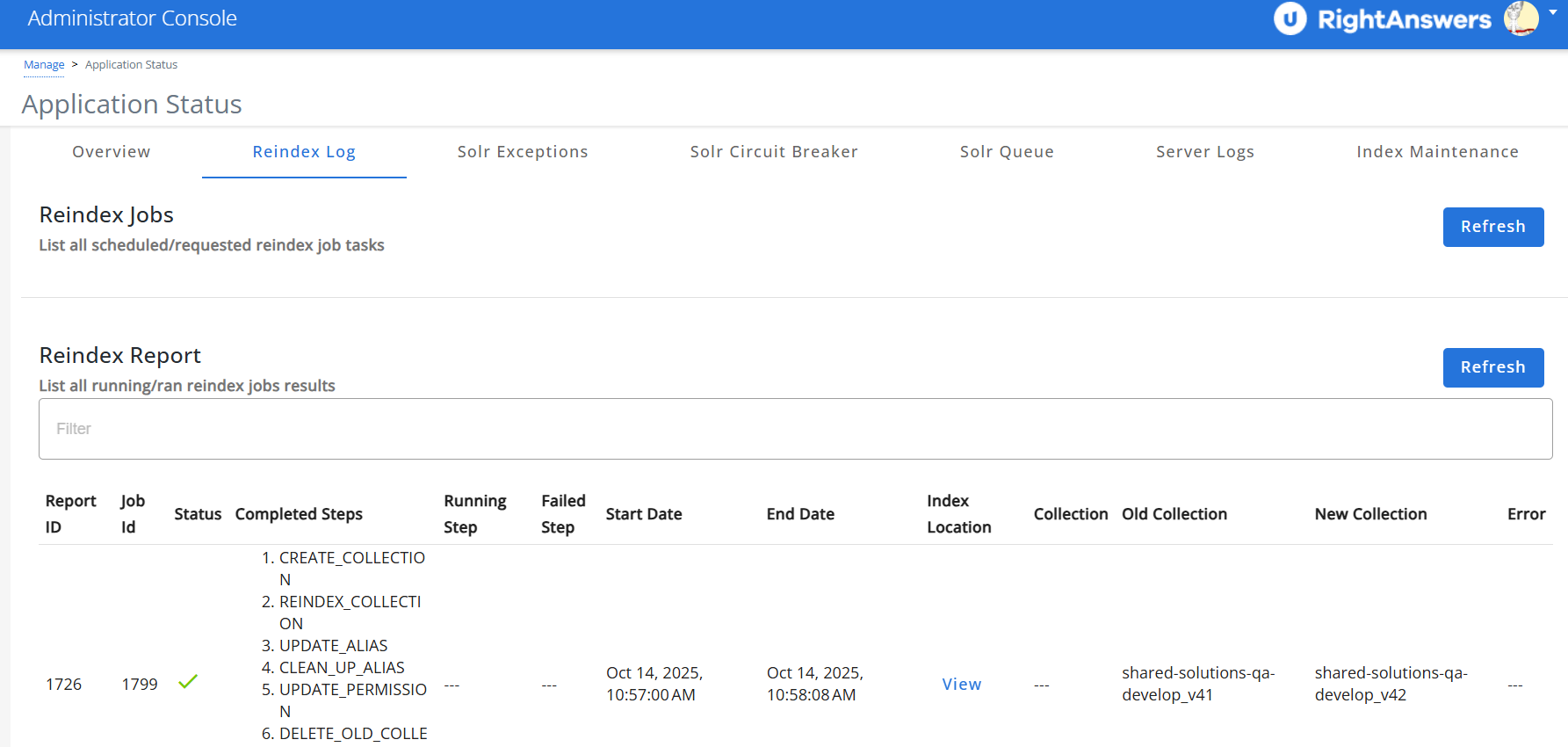For more information, refer to RightAnswers: Admin: Manage Index Maintenance .