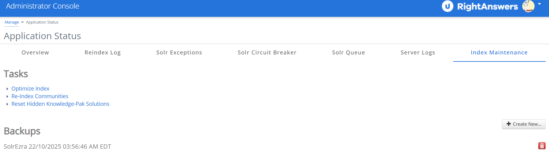For more information, refer to RightAnswers: Administrator Console Help .
