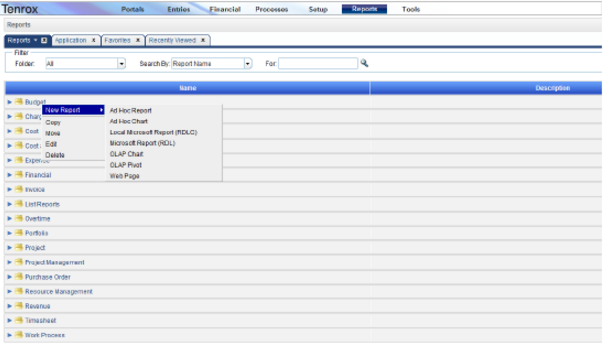 Reports Tab (Accessing the Menu Bar in the Tenrox Application)