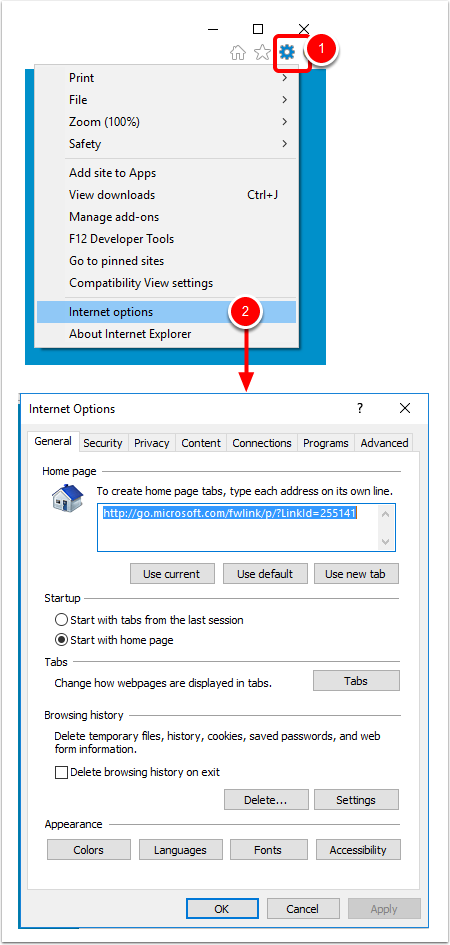 1. Access Internet Options