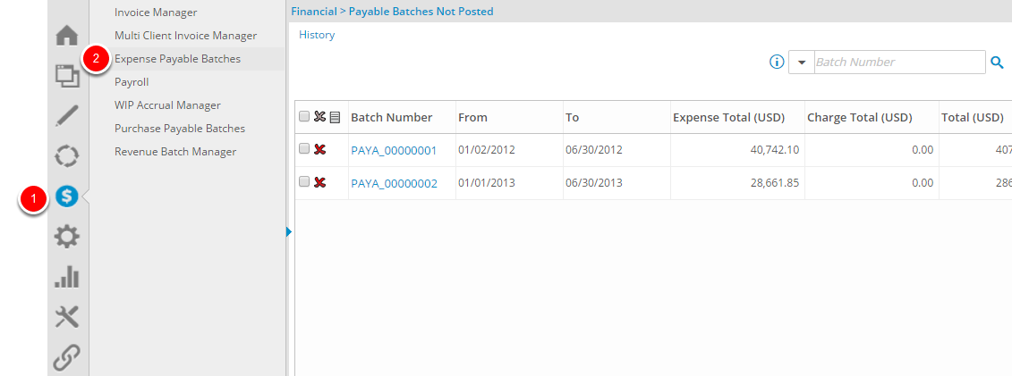 - Click Expense Payable Batches from the Navigation Menu, to open the Payable Batches Not Posted page